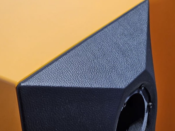 El uso de piel sintética en el frente también ayuda a reducir los rebotes de frecuencia en mismo y micro-reflexiones del bafle gracias a su textura rugosa y suave.