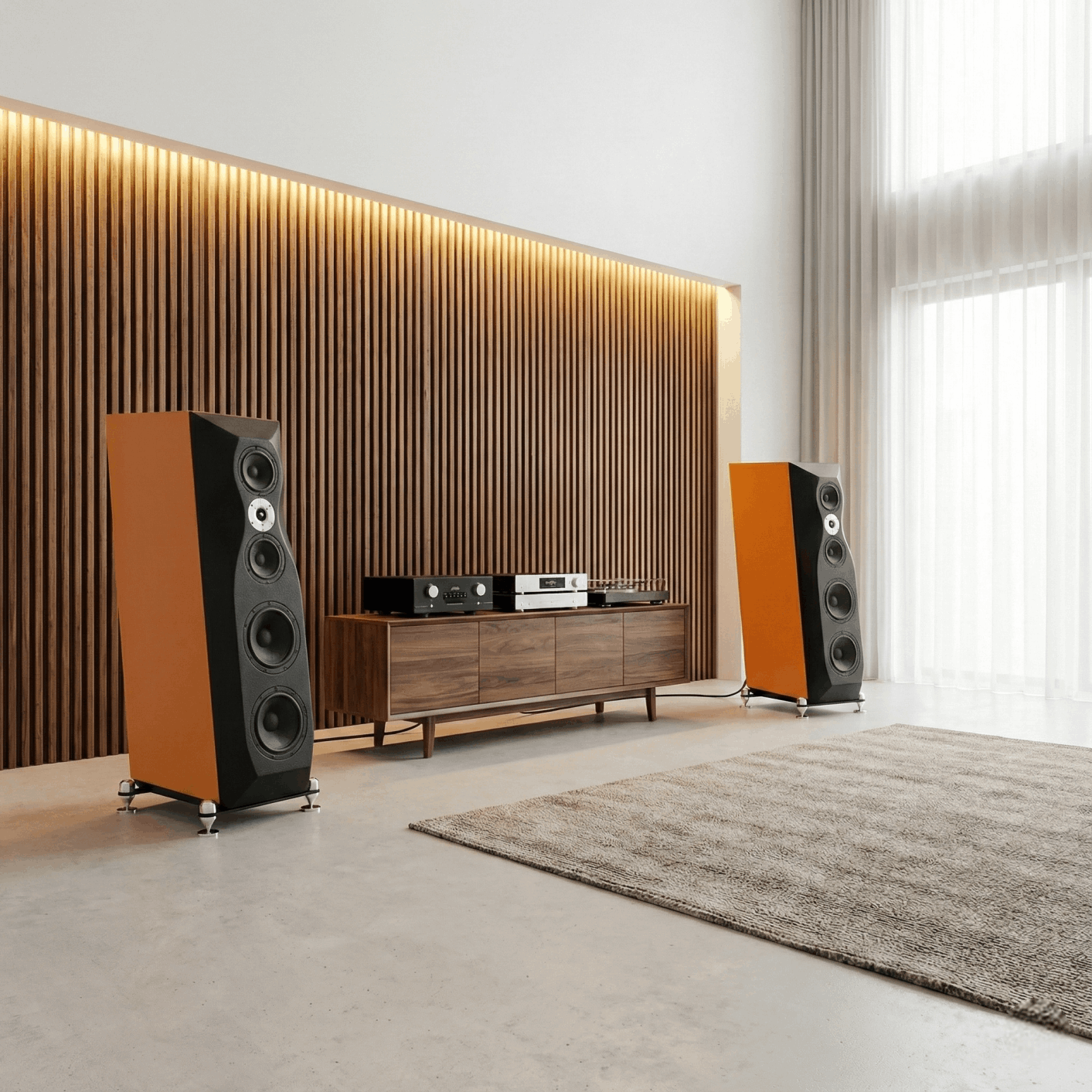 La configuración D'Appolito perfecciona la imagen estéreo y amplía el punto de escucha, brindando voces cristalinas, centradas e impacto medio, si, impacto medio. Al integrarla con dos potentes woofers de 10 pulgadas, obtienes graves profundos y viscerales con mínima distorsión y mucha, pero mucha profundidad. Esta combinación maestra ofrece lo mejor de dos mundos: la precisión quirúrgica del Hi-End y el impacto físico del cine en casa. Vive un sonido inmersivo, lleno de matices y autoridad absoluta.