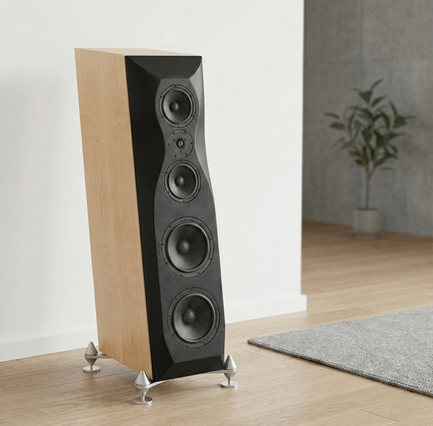 la inclinación no es solo estética, de esta forma los drivers toman la distancia necesaria para que todos este alineados a la distancia correcta según sea su frecuencia de preproducción y lleguen al mismo tiempo a tus oídos, logrando una coherencia asombrosa.