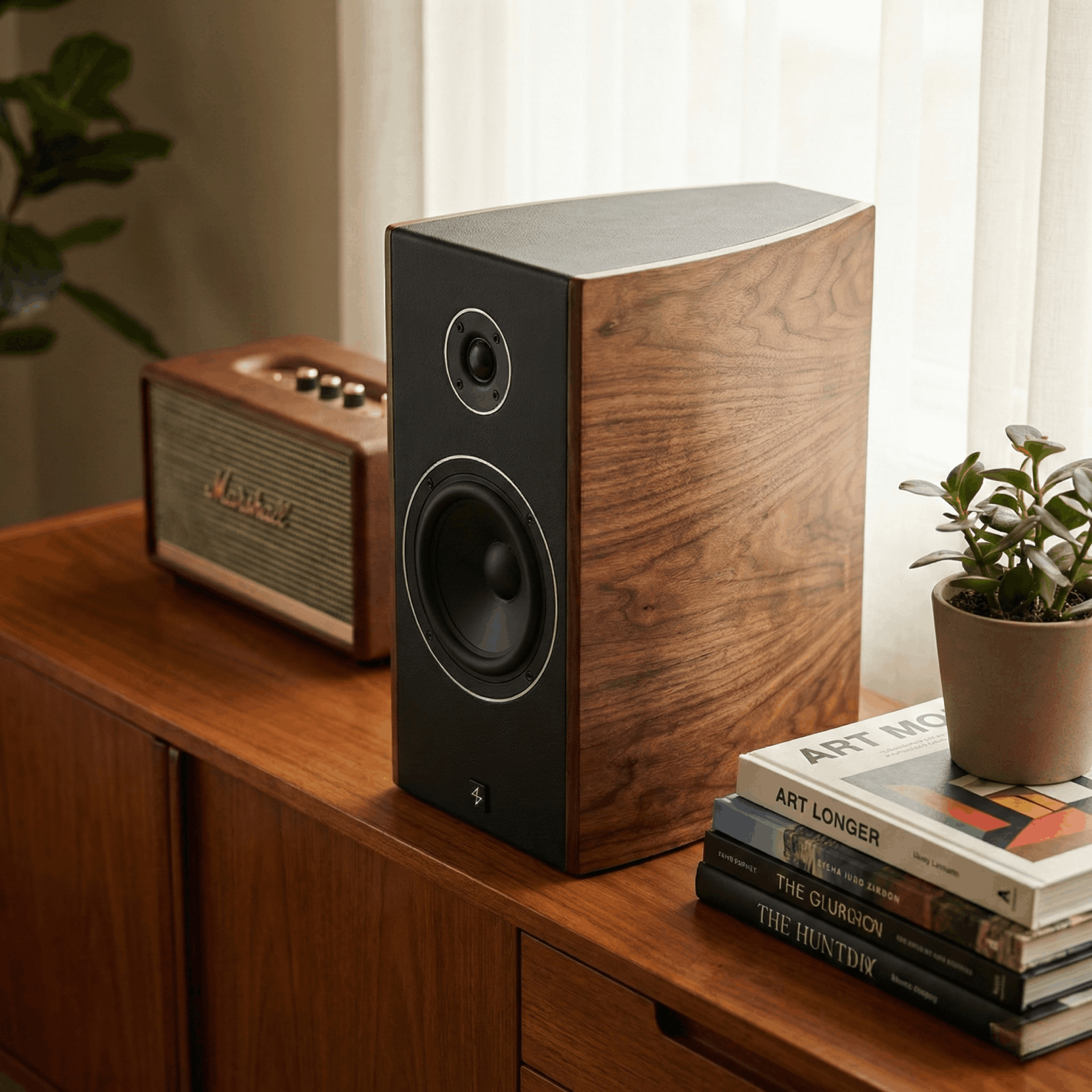 Las paredes curvas eliminan resonancias internas y aumentan la rigidez estructural, entregando un sonido puro y sin coloración. Al romper las ondas estacionarias, garantizan graves precisos y una claridad excepcional. Es la fusión perfecta entre ingeniería acústica avanzada y diseño elegante, permitiendo que la música suene tal como fue creada.
