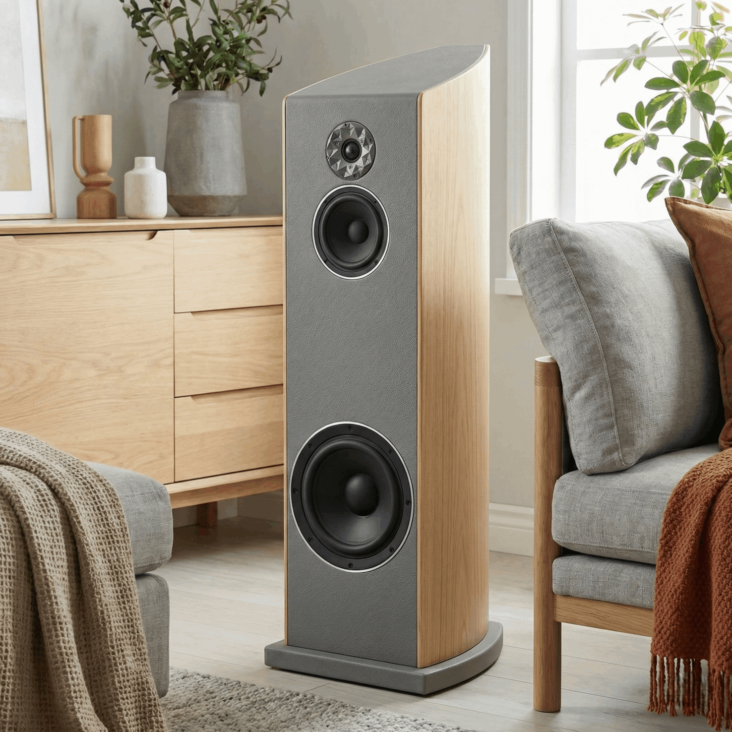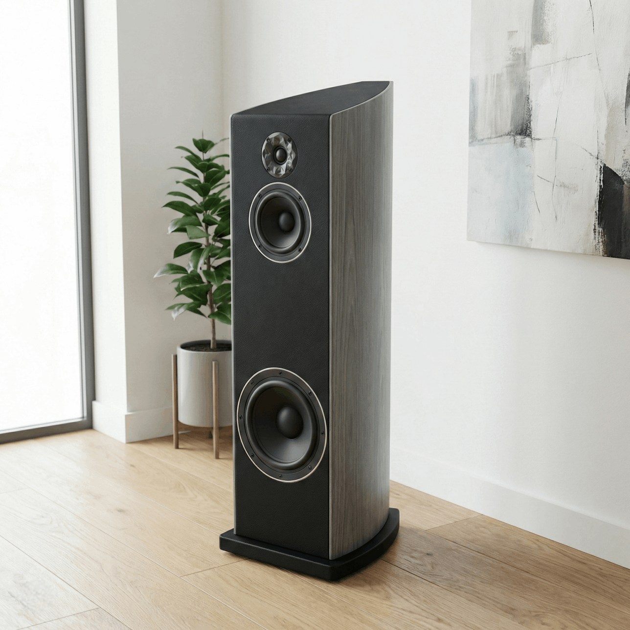 Nuestro modelo Aries Three es una declaración de potencia, rendimiento y diseño en el mundo Hi-Fi serio. una estética suave y diferente gracias al uso de cuero en la parte frontal, media y trasera, pero no es solo estético, tiene un porque técnico. su diseño elegante y diferente, comunica que no es una bocina común, lo que dice es; "tengo sonido Unico, emocional y soy una pieza de arte".