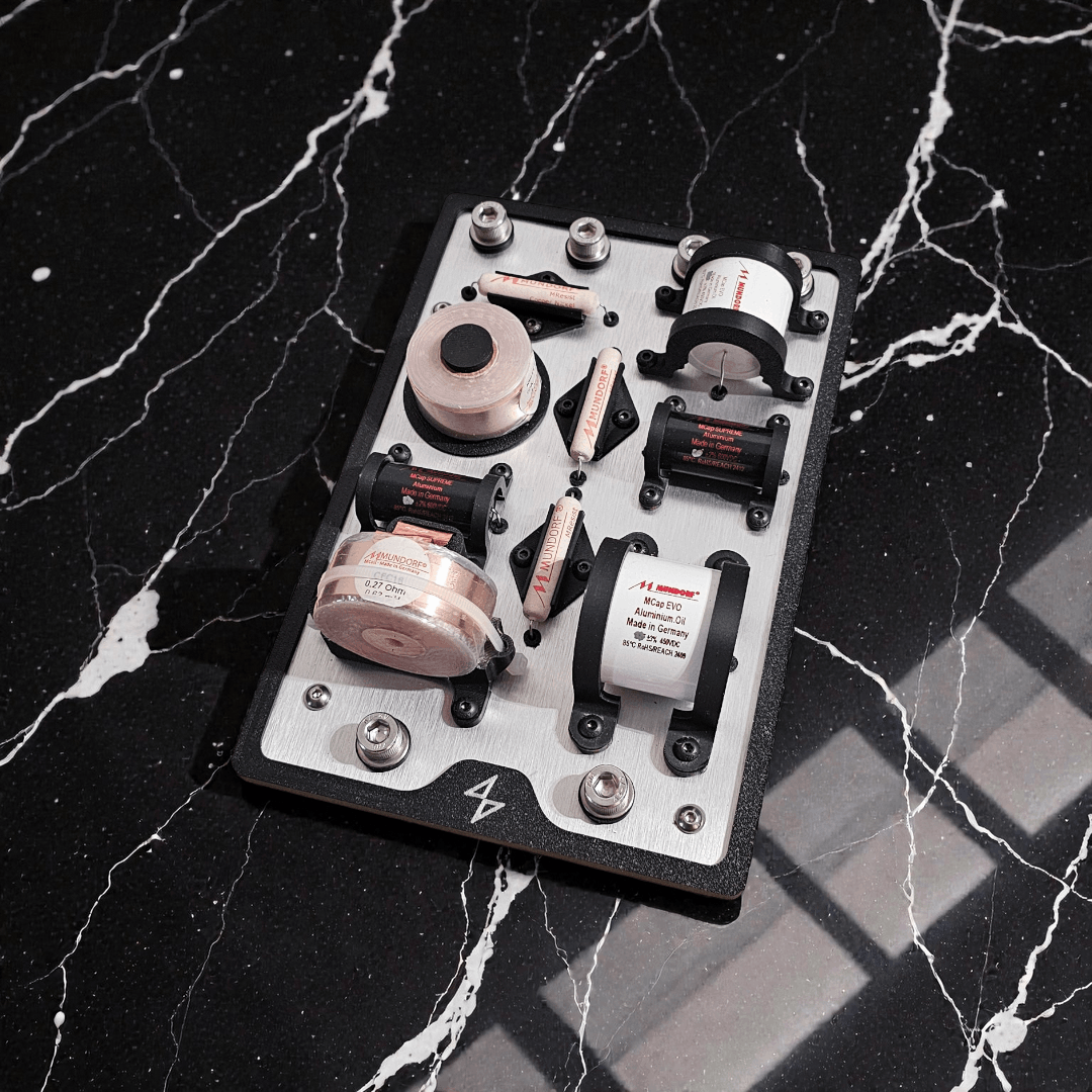 Uno de los componentes mas importantes y que es considerado el "corazón" de una bocina es su "Crossover" , Red de Cruze o Divisor de frecuencias, como sabemos que este es de vital importancia en el desarrollo de una bocina cuidamos cada detalle, elevamos el estándar de calidad de bocinas de éste nivel de precios al incluir componentes de las mejores marcas, incluidos generalmente en bocinas de categorías Hi-End.