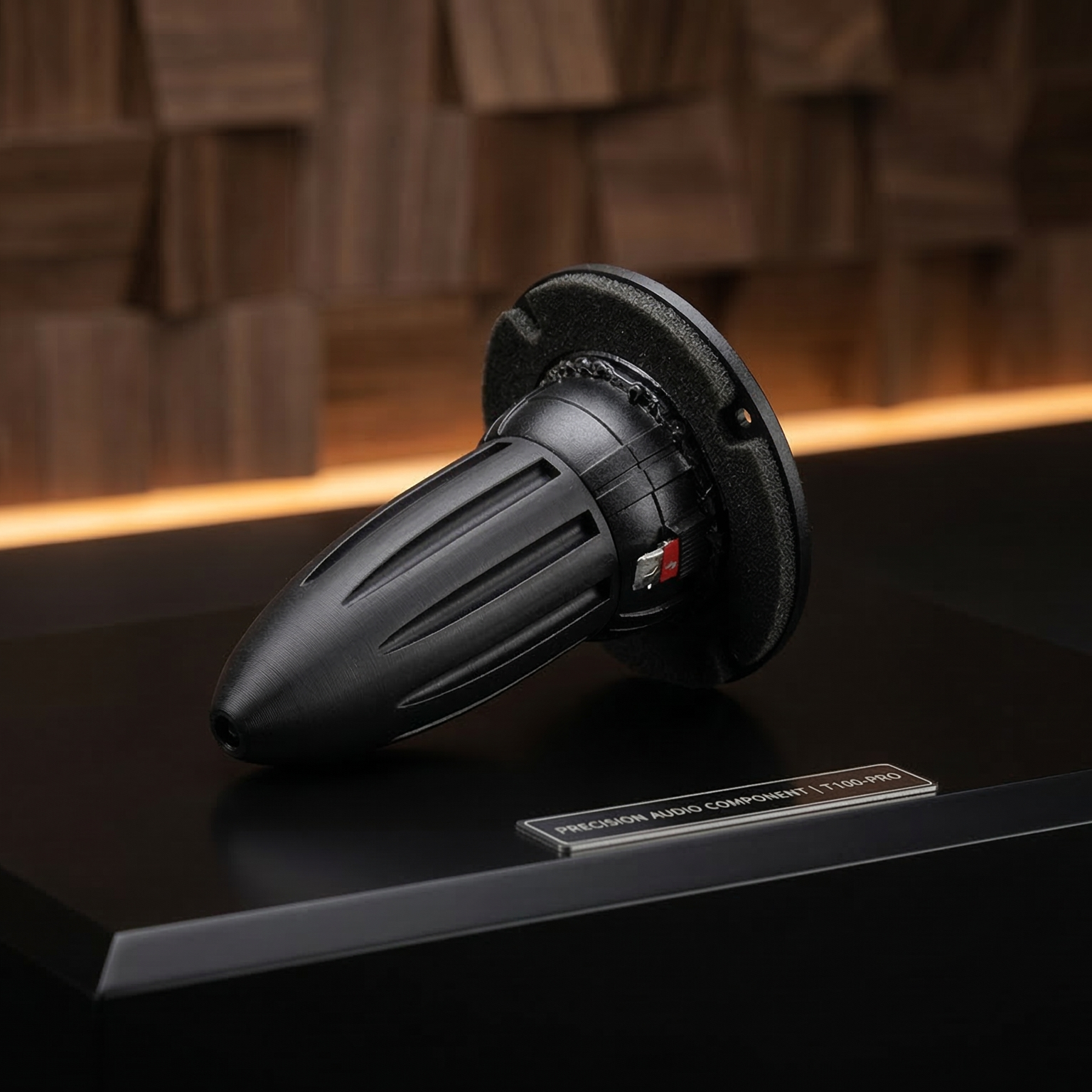 Las paredes curvas eliminan resonancias internas y aumentan la rigidez estructural, entregando un sonido puro y sin coloración. Al romper las ondas estacionarias, garantizan graves precisos y una claridad excepcional. Es la fusión perfecta entre ingeniería acústica avanzada y diseño elegante, permitiendo que la música suene tal como fue creada.